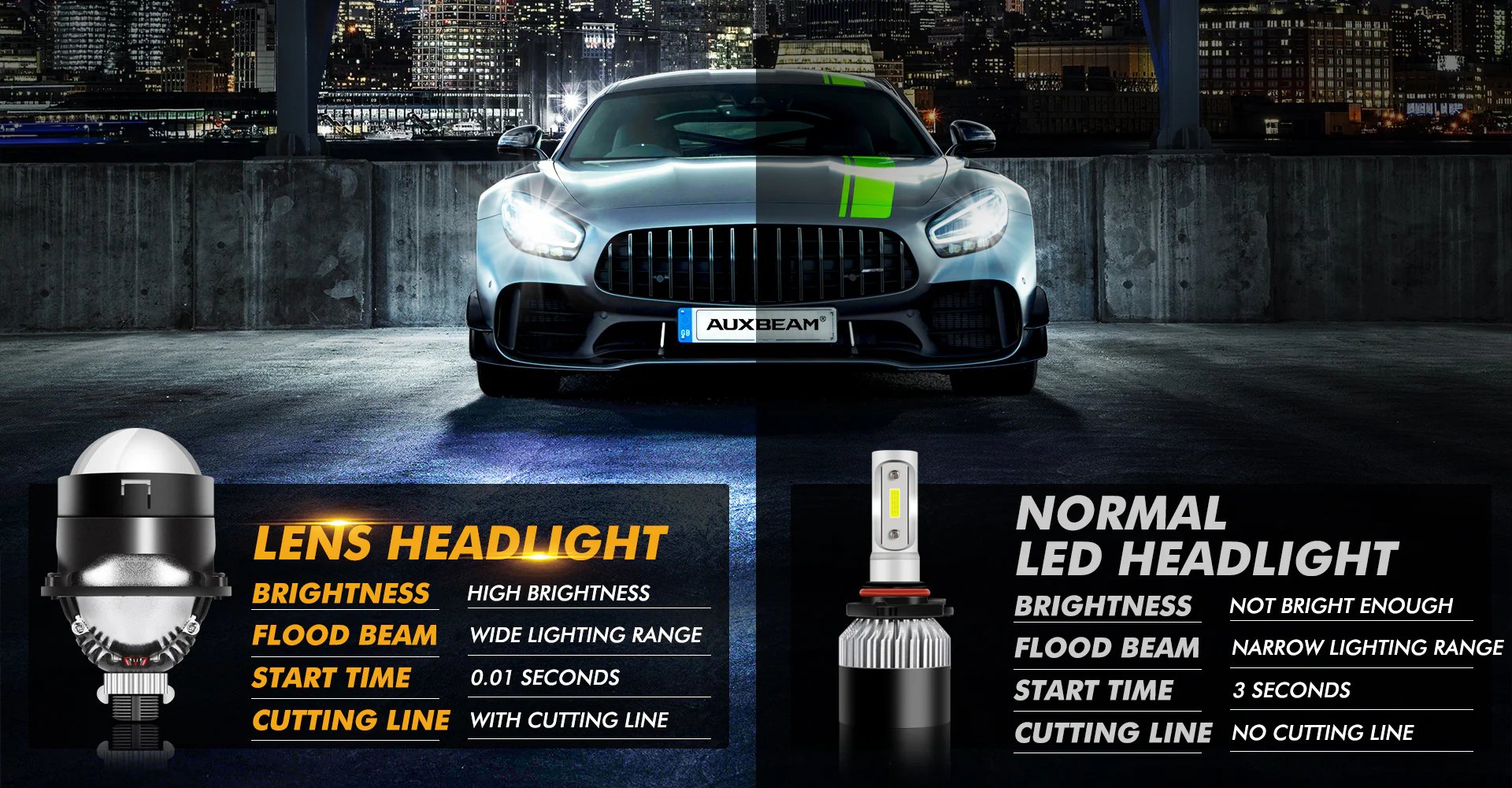 - 2 individual LED Spotlight chips emit strong, focused, and long-range third light through the 2 small lenses, providing 500% brighter than halogen bulbs and 300% brighter than normal LED bulbs.