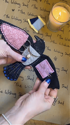 Thoughtfully made with soft felt and delicate details, this enchanting crow unfolds to reveal organized spaces for scissors, pins, needles, thread, and tiny notions. Every compartment is intentional — a reminder that creativity thrives when cared for.